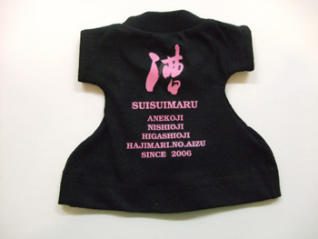 1枚だけのミニTシャツなので転写プリントで加工するのですが、マークや文字のピンク部分だけを切り抜いてほしいという要望でした。アイテムが小さいためデザインも縮小されるので、細かな作業になりましたが、とてもキレイに仕上がったと思っています。(Tシャツはお客様の方で少し加工されました)